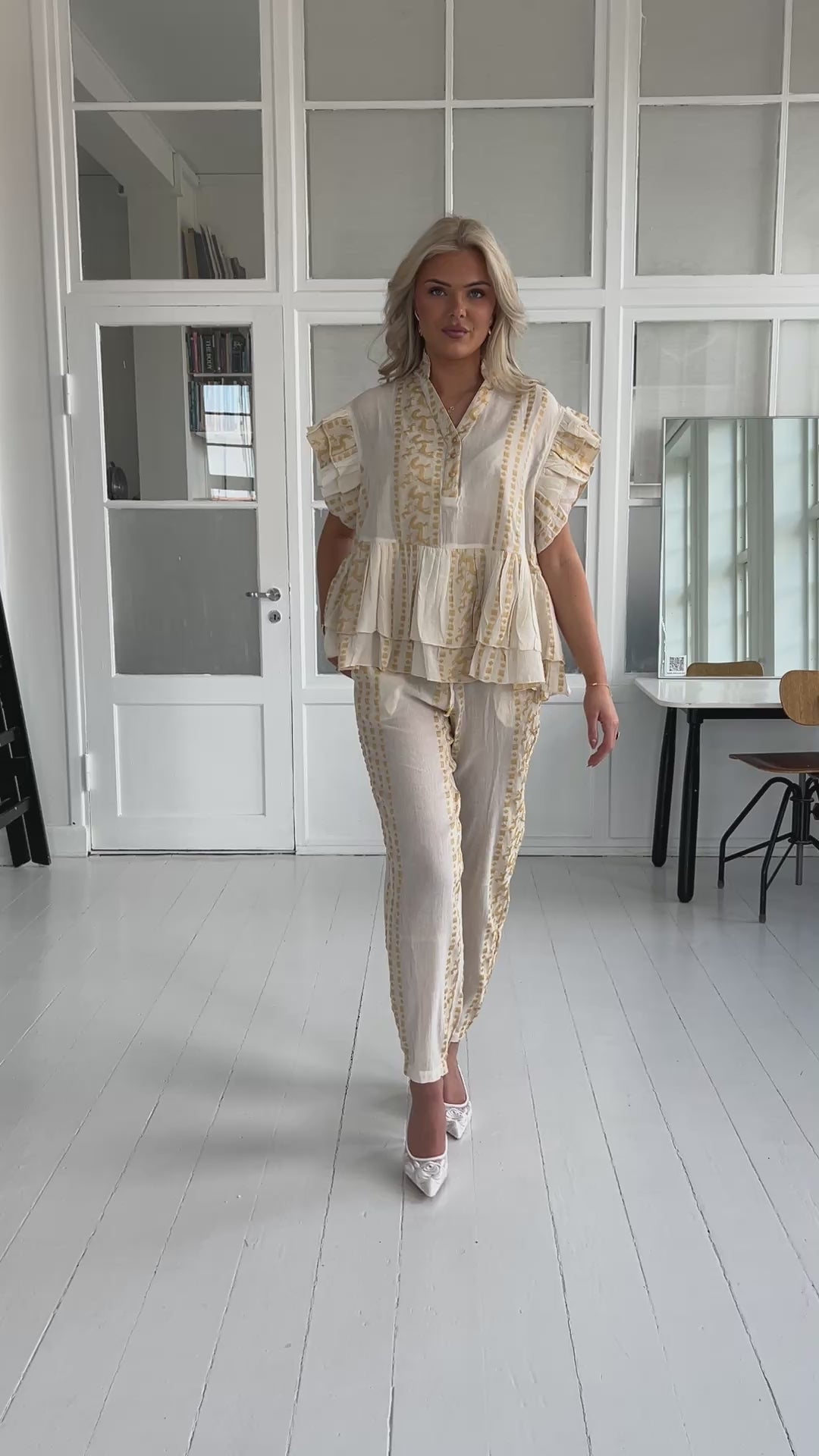 Beige med gyldent print
